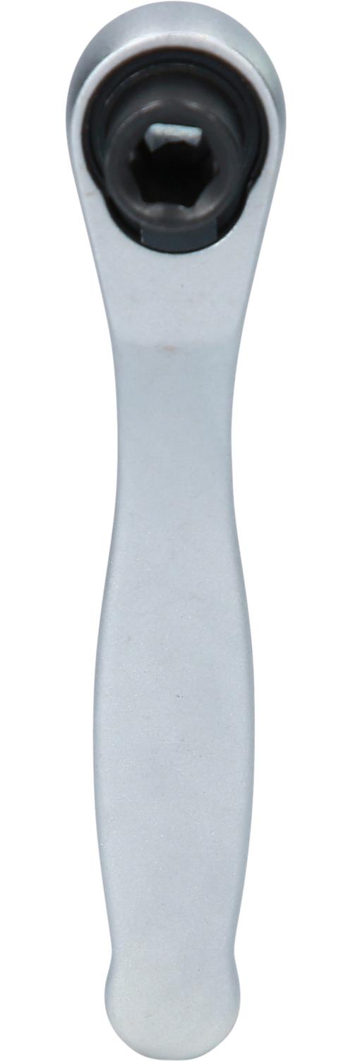 Die magnetische BRILLIANT TOOLS Bit-Umschaltratsche BT053901 hat einen 1/4" (6,3 mm) Innensechskant-Abtrieb und eine Länge von 95 mm. Damit liegt sie gut in der Hand und ist mit ihrer einfachen Einhandbedienung für die engsten Schraubanwendungen wie z.B. an Motoren, im Maschinenbau und auch an Agrargeräten geeignet. Durch die Feinverzahnung mit 72 Zähnen hat die Ratsche einen kleinen Rückholwinkel von 5°. Die gesenkgeschmiedete Ratsche ist besonders filigran, leicht und kompakt. Sie ist für Verschraubungen mit allen gängigen 1/4"-Bits mit Außensechskantantrieb nach DIN 3126 / ISO 1173 - C 6,3 geeignet. Einfache Links / Rechtsumschaltung. Sie besitzt einen innenliegenden sehr starken Neodym-Magneten zum Festhalten des Bits.
