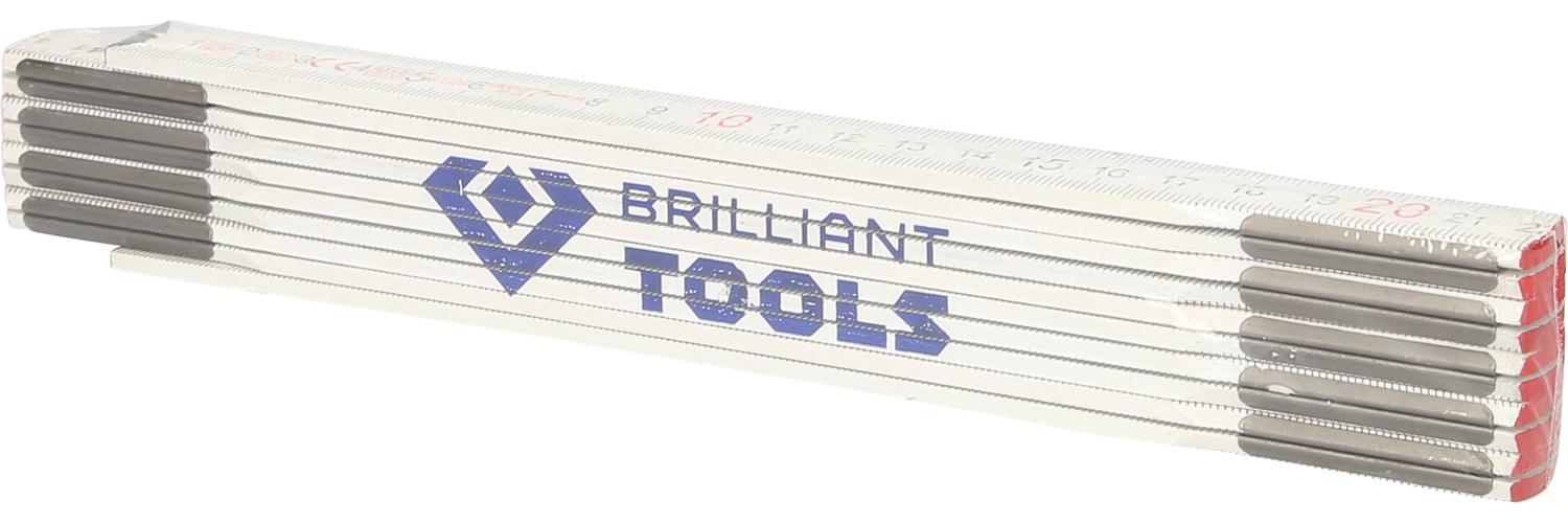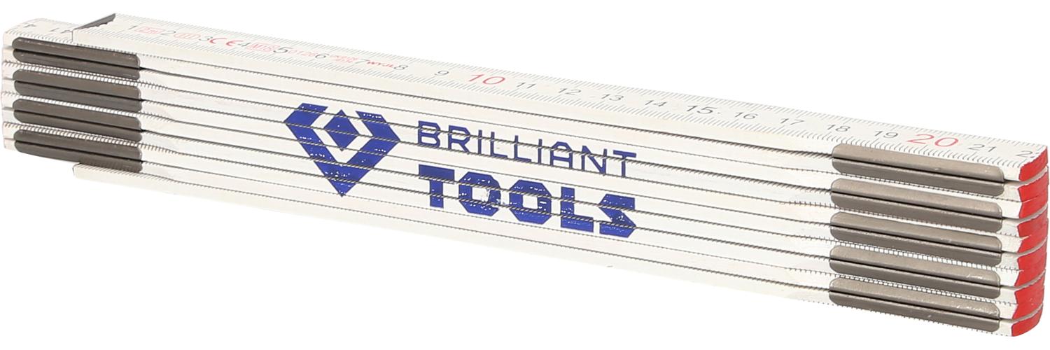 Der BRILLIANT TOOLS Holzgliedermaßstab BT110900 hat eine Länge von 2 metern. Er ist aufgrund der Zentimeter- und Millimeter Einteilung an beiden Maßstabkanten universell einsetzbar. Die durchgenieteten Gelenke sorgen für eine gute Haltbarkeit.