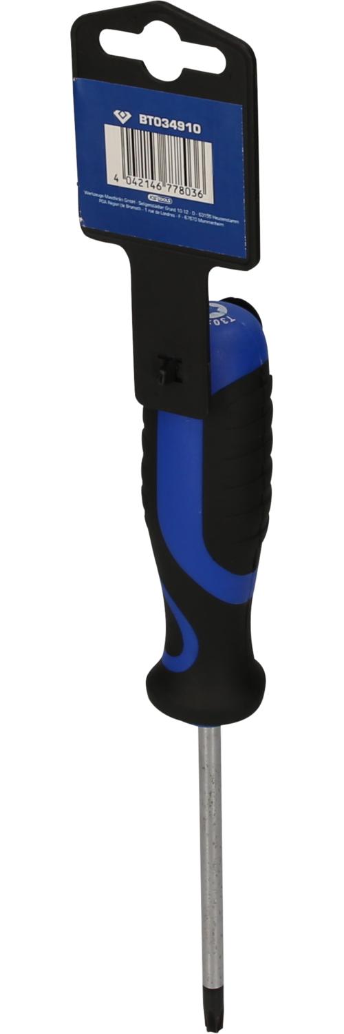 Der BRILLIANT TOOLS Torx Schraubendreher mit Schlagkappe BT034910 mit einer Klingengröße T30, ist der perfekte Problemlöser bei festsitzenden Schrauben. Diese werden durch leichte Schläge mit einem Hammer auf die Schlagkappe gelockert. Durch den Antriebssechskant an der Klinge kann an dieser Stelle zur Unterstützung ein Schraubenschlüssel eingesetzt werden. Der Schraubendreher hat eine Klingenlänge von 10 cm.