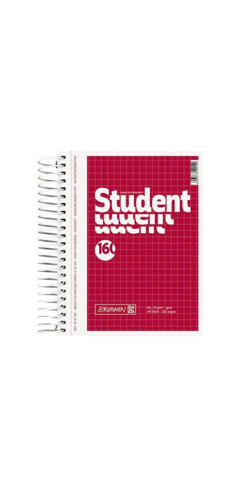 Brunnen Collegeblock Student DIN A6 kariert 70g/m² Karton rot 160 Bl.