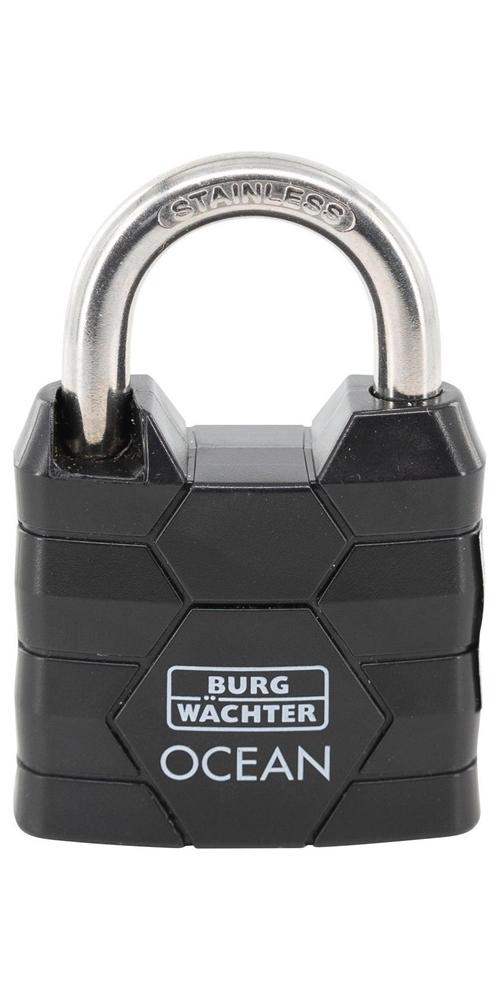 massiver Messingkörper · stoß- und kratzfester Kunststoffmantel · Bügel doppelt verriegelt · Edelstahl rostfrei · seewasserfestWeitere technische Eigenschaften: