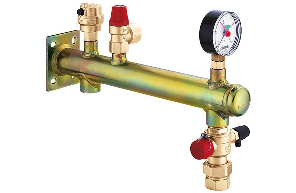 Gefäßanschlussgruppe für Heizungsanlagen aus Stahl. Komplett mit Schnellentlüfter · Sicherheitsventil · Manometer und automatischer Absperrung mit Entleerung für Ausdehnungsgefäße. Technische Daten: 3/4″ IG · bis 20 kW Hersteller: Caleffi S.P.A. Serie: 335 Artikelnummer: 335632
