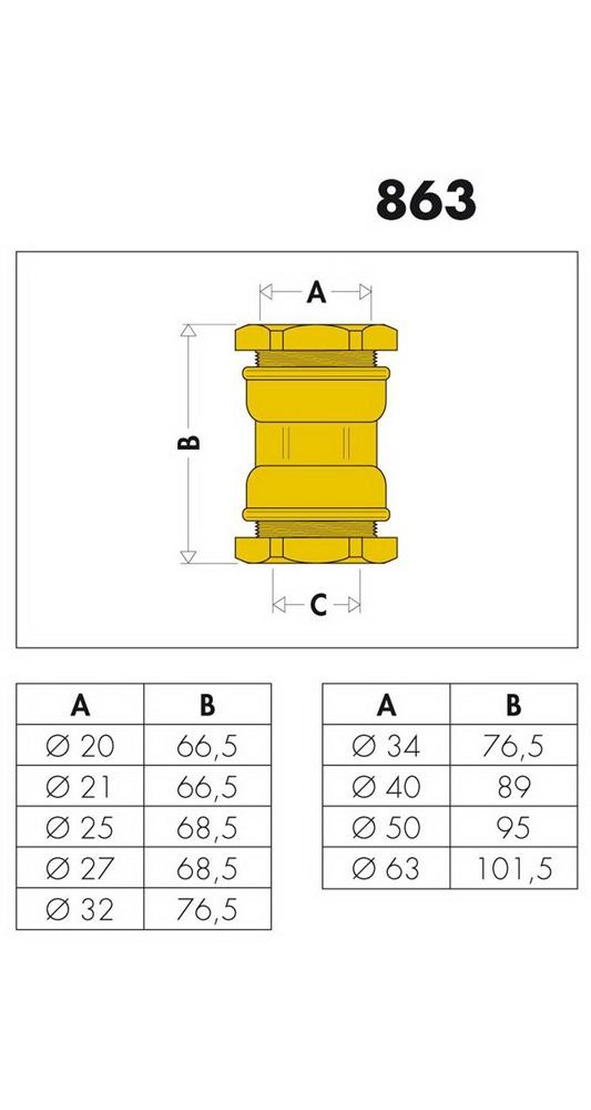 Kupplung. Aus Messing. Für Polyethylenrohre. Max. Betriebsdruck: 16 bar. Max. Betriebstemperatur: 40 Grad C. Technische Daten: 32mm Hersteller: Caleffi S.P.A. Serie: 863 Artikelnummer: 863032Attribute