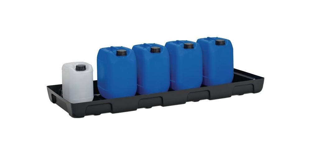 für Kleingebinde · zur sicheren und vorschriftsmäßigen Lagerung gewässergefährdenden Flüssigkeiten der GHS-Kategorien 1-4 · aus Polyethylen · sehr beständig gegen Laugen, Öle und Säuren · ohne PE-Rost · stapelbar · konzipiert für verschiedene Regaltiefen · mit DIBT-Zulassung Nr. Z-40.22-601Weitere technische Eigenschaften: