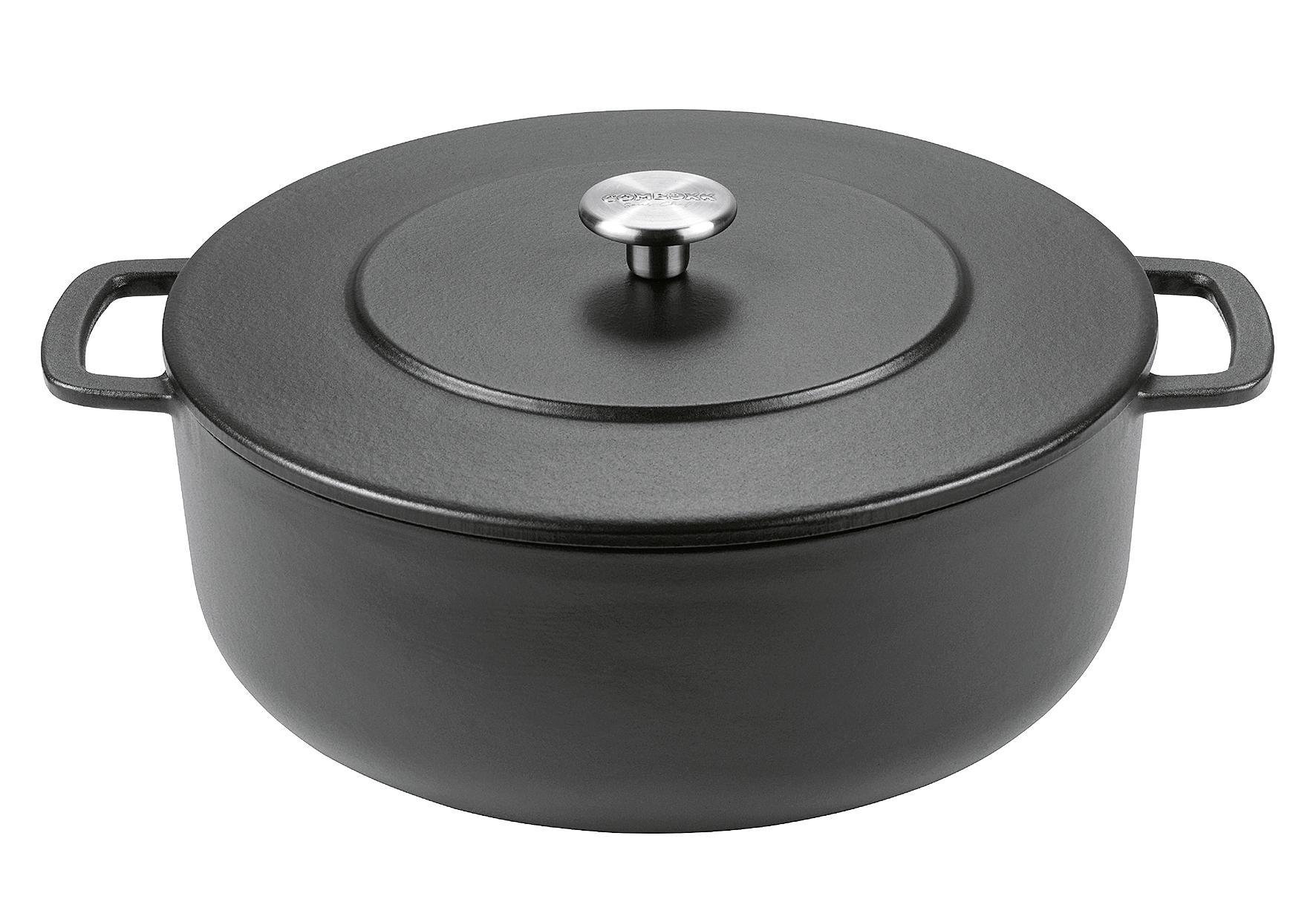Dutch Oven "Souschef", Gußeisen (100 % recyceltes Eisen), Antihaftbeschichtung: Emaille, Eloxierter Knauf, für alle Herdarten geeignet, Ofenfest. Maße: Ø 28 cm, 5,8 l, H 10 cm. Farbe: schwarz.Attribute