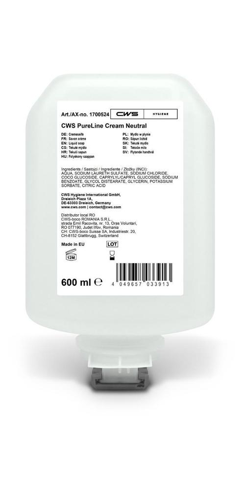 PureLine Cream Neutral Flasche à 600 ml (ca. 1.200 Portionen)Weitere technische Eigenschaften: