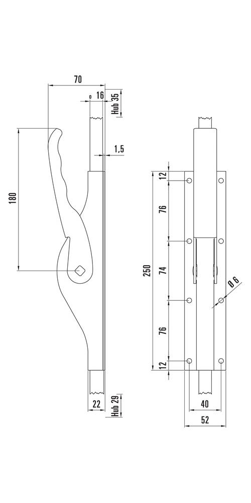 DENI Tortreibriegel PLANO 16 mm Schlaufenanzahl 4 Stahl hell verzinkt