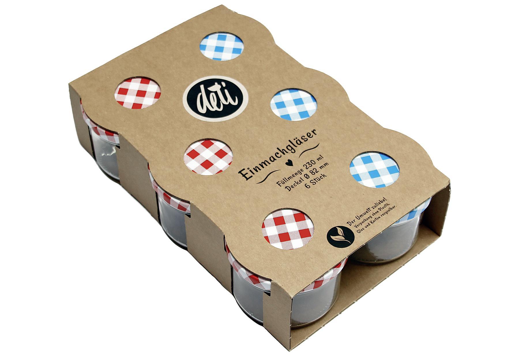 230 ml Einmachgläser, wiederverwendbar und nachhaltig mit PVC freien Twist-off-Deckeln. Formschön und robust. TO 82, 230 ml, H 6,5 cm.Lieferumfang: