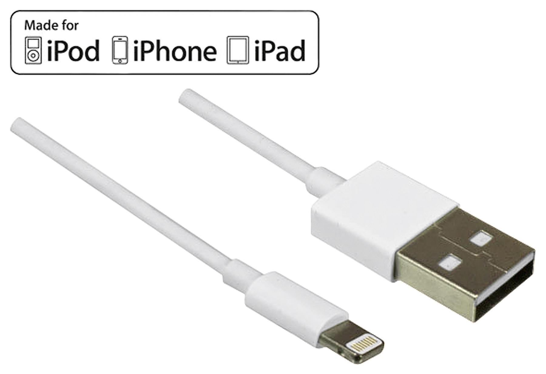 Lightning Sync- und Ladekabel, kompatibel zu allen Apple Geräten wie iPhones, iPads oder iPods mit Lightninganschluss, Anschluss 1: USB-A Stecker, Anschluss 2: Lightning Stecker, Kabellänge 0,5mNutzung nur unter direkter Aufsicht von Erwachsenen