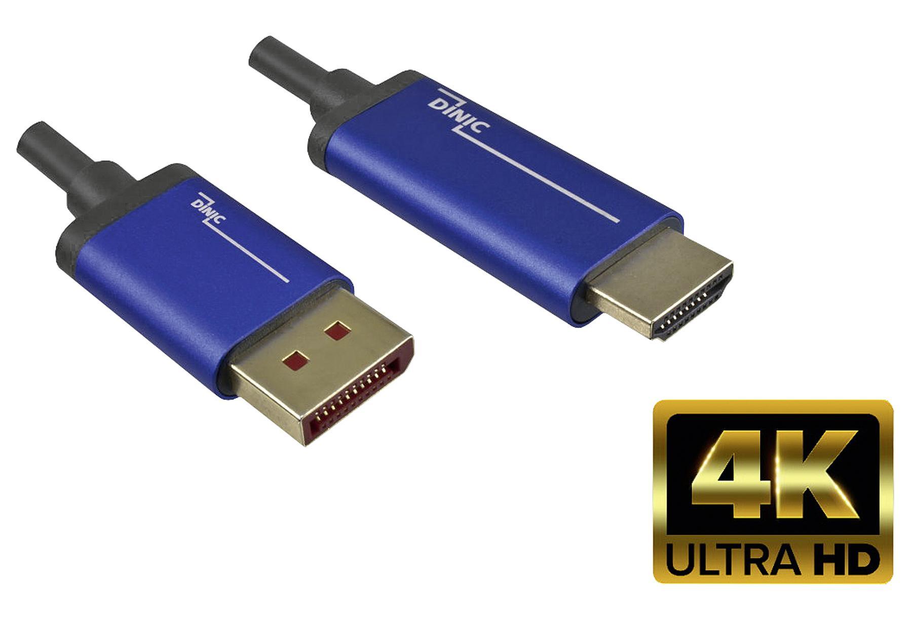 Premium T8 Displayport 1.4 auf HDMI Kabel - Stecker auf Stecker, Dieses hochwertige Kabel der T8 Serie, ist durch seine bestmöglichen Leistungsdaten und seiner hochwertigen Materialien für den privaten Gebrauch und für den professionellen Einsatz bestens geeignet. Hinweis / Bitte beachten: Generell sind alle DisplayPort (DP) auf HDMI Kabel und/oder passive Adapter monodirektional, d.h. funktionieren nur in die Richtung DP auf HDMI (Monitor). Technischer Hintergrund: Die DisplayPort-Schnittstelle kann ein HDMI-Signal ausgeben. An einem HDMI-Port hingegen liegt jedoch kein DisplayPort-Signal an. Letztere Art der Signalwandung ist nur mit einem aktiven Konverter (Signalwandler) möglich. Videoauflösungen: bis zu 4K@60Hz, 3D, HDR, DisplayPort 1.4 auf HDMI 2.0 Kabel, Stecker: 1x DisplayPort auf 1x HDMI , Metallstecker, OFC conductor, Vergoldete Kontakte, Einzeltest: Quantum Data 980, Länge: 1mNutzung nur unter direkter Aufsicht von Erwachsenen