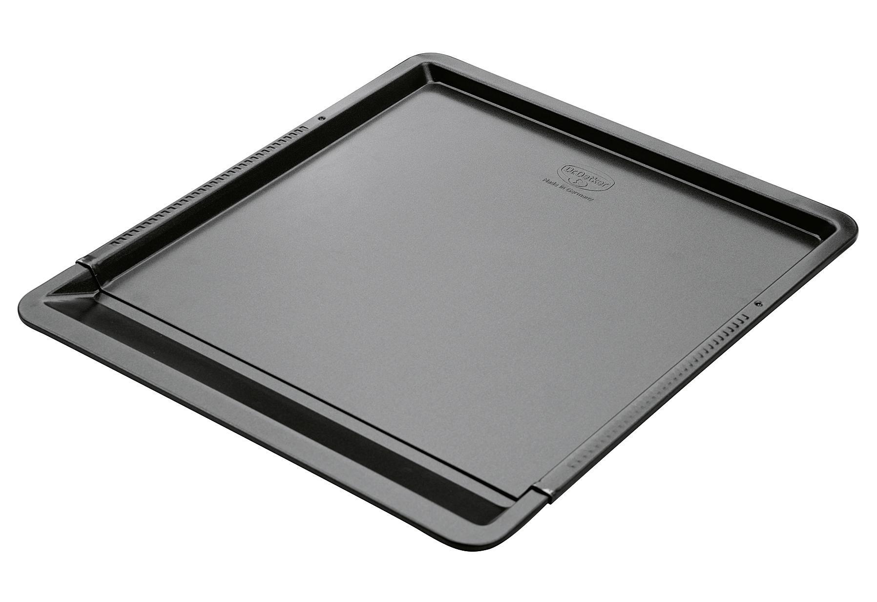 Back- und Plätzchenblech "Classic", Material: Stahlblech, mit PFAS-freier Antihaft-Beschichtung, Maße: (LxBxH): 33x52x1,5 cm, verstellbar von 37-52 cm, Farbe: schwarz.Lieferumfang: