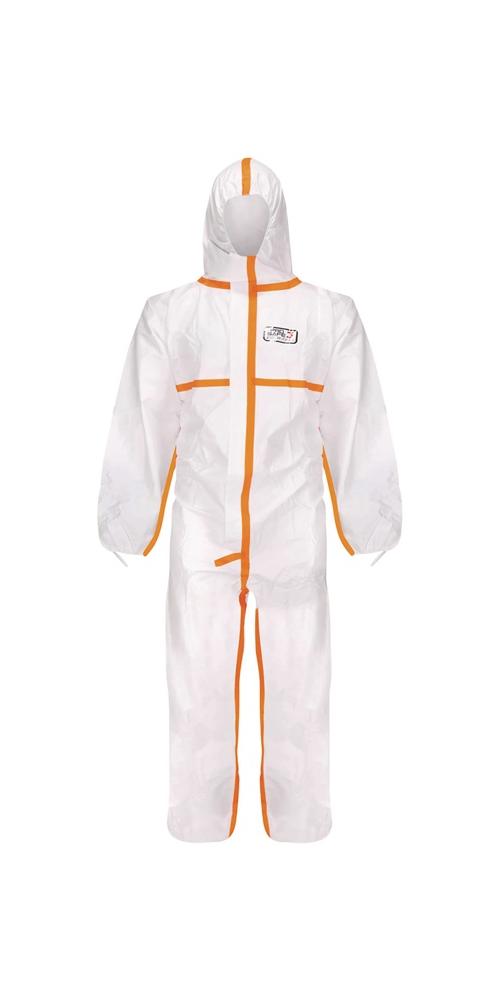 CE KAT III, EN 14605 Typ 3B, EN 14126, EN 1149-5, EN 1073-2, EN 13982-1, EN 13034Marktneuheit - einzigartige Kombination aus Sicherheit und Komfort · leicht, flexibel und leise · zuverlässiger Schutz vor Flüssigkeiten und Spritzern · Daumenschlaufe · versiegelte und verstärkte Nähte · Gummizüge in Arm- und Beinabschluss · Reißverschlussabdeckung