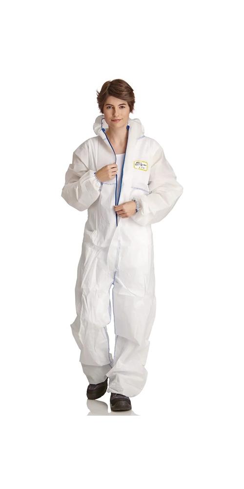 KAT III, Typ 5 + 6, EN 13034, EN 13982-1Schutzoverall aus 3-lagigem SMS-Material · dreiteilige Kapuze mit Gummizug · mit Arm-, Bein- und Taillengummis · dreiteilige Schritteinlage · außenliegenden Nähte · mit Reißverschlussabdeckung · angenehme Passform für Damen und Herren · Schutz bei anspruchsvollen Arbeitsumgebungen, wie sie in den Bereichen Asbest, Entsorgung, Sanierung und Eichenprozessionsspinner auftreten