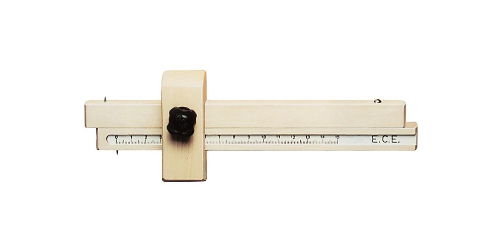 aus Weißbuche · mit zwei einzeln verstellbaren Maßstäbchen · mit eingelegten, gut ablesbaren mm-Skalen · schlanke Anreißnadeln aus Stahl · FeststellschraubenWeitere technische Eigenschaften: