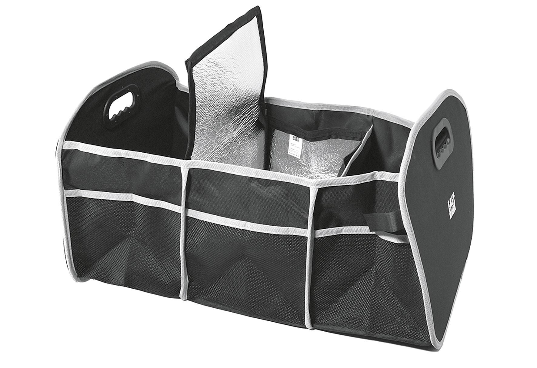 Kofferraumtasche faltbar mit den Maßen: 59 x 35 x 31 cm, ca. 45 Liter, inclusive einer Kühltasche. Vielseitig einsetzbar: egal ob für den Einkauf, Aufladekabel, Starthilfkabel, Putzzeug, Spielsachen, Werkzeug, Getränke, uvm. - diese Faltbox für den Kofferraum verschafft sicheren Stauraum, ohne dass Ihre Sachen herumfliegen! car boot organiser / organisateur de coffre de voiture / kofferbak organisatorAttribute