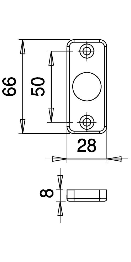 für Rahmentüren · Höhe 66 mm · Breite 28 mm · Schildstärke 8 mm · verwendbar mit allen Türdrückern und Lochteilen · Kanten eckig · sichtbare Verschraubung · Lieferung ohne SchraubenWeitere technische Eigenschaften: