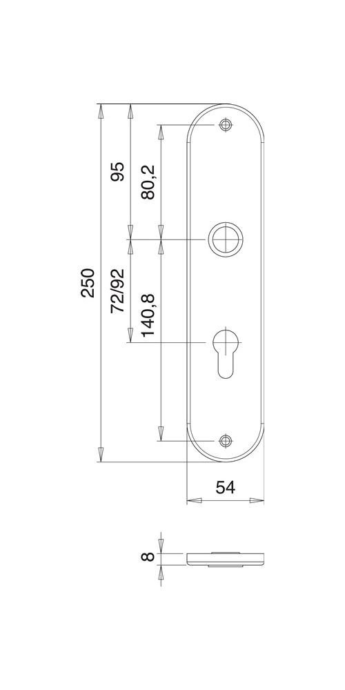 Edelstahl · oval · sichtbare Verschraubung · Breite 54 mm · Länge 250 mmWeitere technische Eigenschaften: