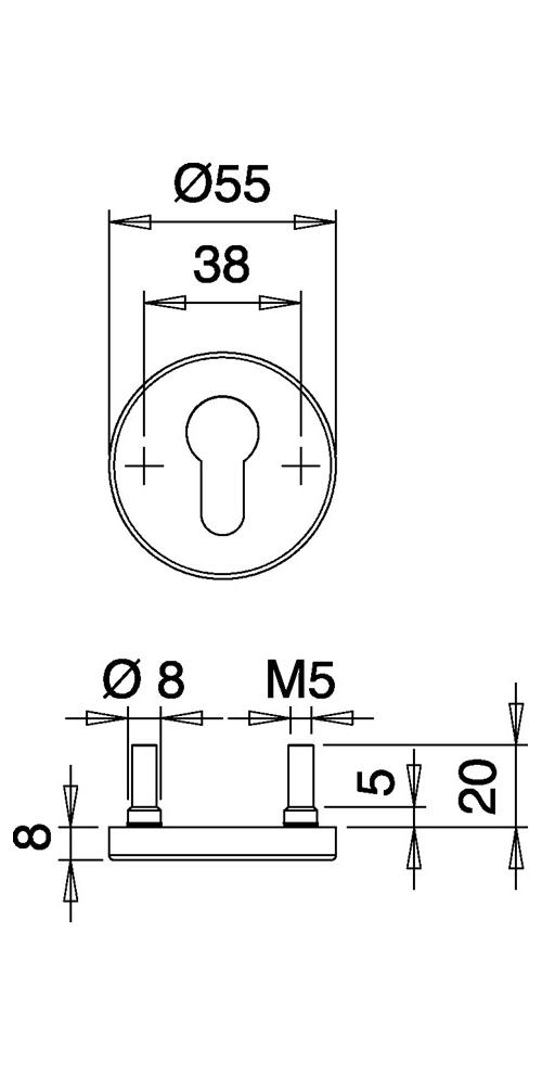 EDI Schlüsselrosetten-Paar 056 Edelstahl F00 Schildstärke 8 mm PZ rund
