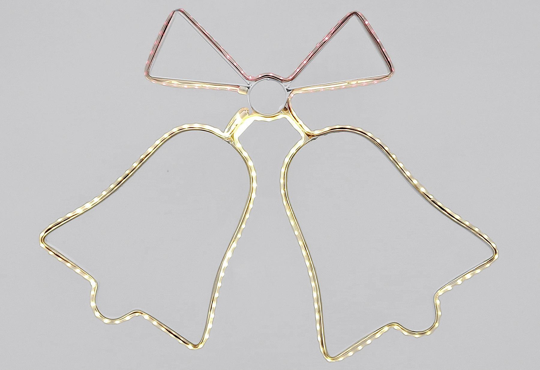 LED Glocken, SMD-Licht, 98 LED/m, 2 m transparenter Lichtschlauch, warmweiße und rote LED, Maße: (LxBxH): 43x3x32,5 cm, 5m Zuleitung, IP44 Adapter mit 6/18 Std. Timer und Dimmfunktion. Material: Kunststoff / Metall.Bedienungsanleitung inkl. Sicherheitshinweise
