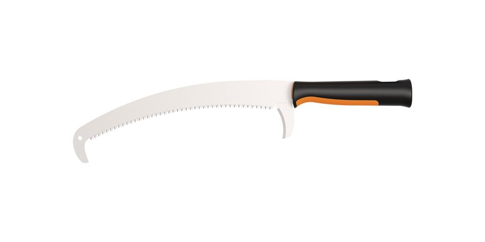 Sägeblatt aus gehärtetem Stahl · gebogen · für Sägearbeiten an weit entfernten Stellen wie beispielsweise höheren Bäumästen · Haken am Sägeblatt für kontrolliertes Sägen · mit Stoßmesser zum Durchtrennen von Rinde · geeignet für bis zu 20 cm dicke Äste · verwendbar mit OneClick-Stiel, OneClick-Griff oder OneClick-TeleskopstieleAttribute