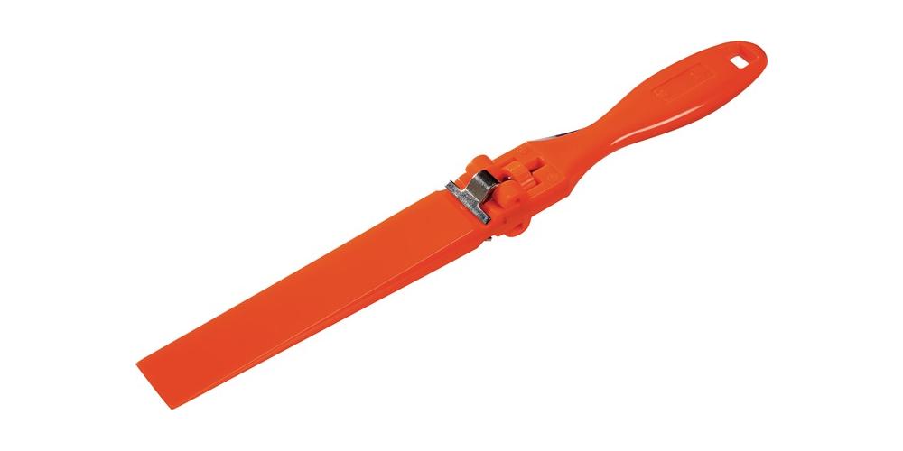 aus festem Kunstoff · mit keilförmiger Blattauflage und Schnellspannvorrichtung · schnelles, sicheres Spannen des Schleifbandes durch Halteklammer mit Klemmschraube · zum Aufspannen von Schleifleinen-Streifen der Länge 280 mm (Blattware bzw. Sparrollen) · besonders geeignet für alle Schleifarbeiten an schwer zugänglichen StellenAttribute