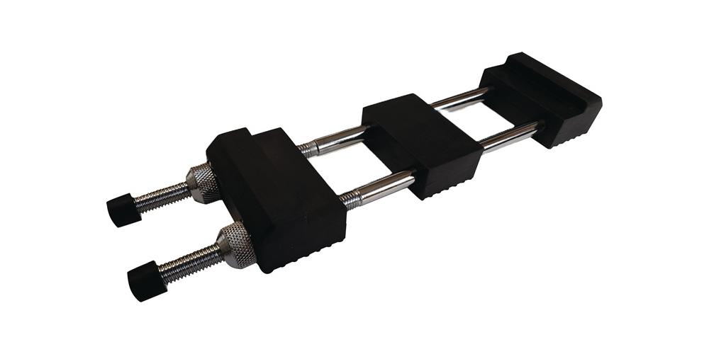 Edelstahl, rostfrei · Gummi-Spannbacken, rutschfest · durch die mittlere Auflagebacke können auch dünnere Steine gespannt werden, ohne zu brechenWeitere technische Eigenschaften: