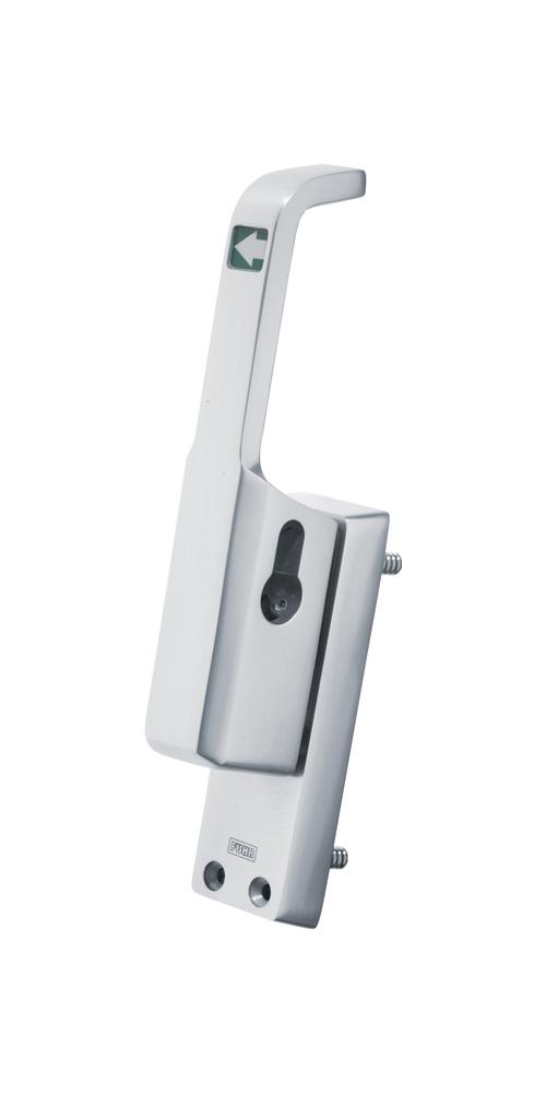 zum Feststellen des Standflügels an zweiflügeligen Türen · käntiges Design · für verdecktlaufende Rundstangen 10 mm · mit Totpunktstellung · teilverdeckte Verschraubung · vorgerichtet für Profilhalbzylinder · Stangenlänge 23 mmWeitere technische Eigenschaften: