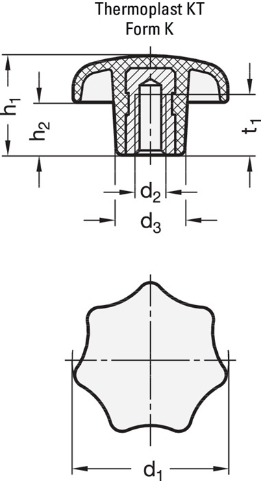 GANTER GRIFF Sterngriff DIN 6336 mit Gewindebuchse Kunststoff d1 32 mm d2 M 6 mm