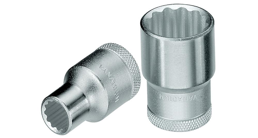 12,5 mm (1/2 ″)-Vierkantantrieb · Vanadiumstahl · verchromt · gerändelt · DIN 3124 / ISO 2725-1Weitere technische Eigenschaften: