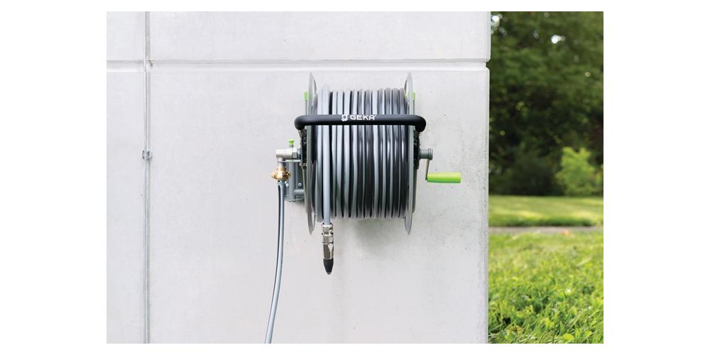 lässt sich stationär ebenso wie mobil einsetzen · montieren Sie den GEKA P40 an der Wand und nehmen Sie ihn bei Bedarf einfach ab, um ihn an den gewünschten Einsatzort zu bringen · schwenkbar · sowohl links- als auch rechtsseitig montierbar · 4-Stufen arretierbar · robuste, pulverbeschichtete Stahlkonstruktion · Winkeldreharmatur aus Messing · für Trinkwasser geeignet · Schutz vor Schlauchknick durch Zulaufrohr 3/4" (aus Edelstahl, für Trinkwasser geeignet) · schlauchschonende Trommel · optimaler Wasserdurchlauf · Temperaturbereich: +4 °C bis +60 °CWeitere technische Eigenschaften: