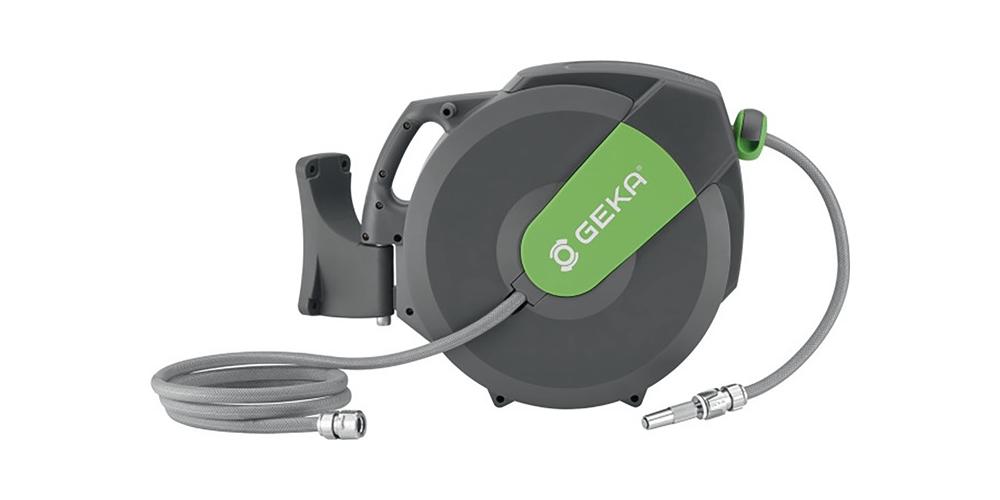 automatisches Aufrollen · Schlauch stufenlos arretierbar · werkzeuglos verstellbarer Schlauchstopper · robuste Wandhalterung: 180° schwenkbar · inkl. Montageset (4x Dübel, 4x Schrauben und 4x Unterlegscheiben aus Edelstahl) · mit Nachtropfstopp für Zulaufschlauch · fertig montiert · Temperaturbereich: 4 °C bis +45 °C · Betriebsdruck: 10 barAbmessungen: 50 (inkl. Halterung) x 18 x 40 cm