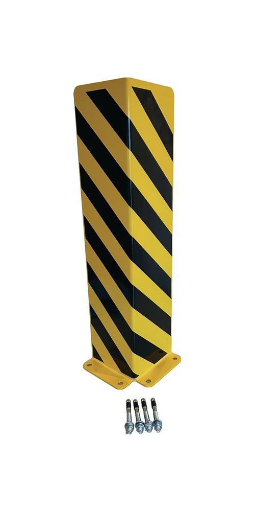 für Regalsysteme im Eck- und im Durchfahrtsbereich · aus gekantetem Stahlblech, Stärke 5 mm · Höhe 800 mm · pulverbeschichtet · verkehrsgelb, RAL 1023 mit Warnmarkierung tiefschwarz, RAL 9005 · inklusive Schwerlastanker zur Befestigung auf Betongrund · VE = 1 StückWeitere technische Eigenschaften: