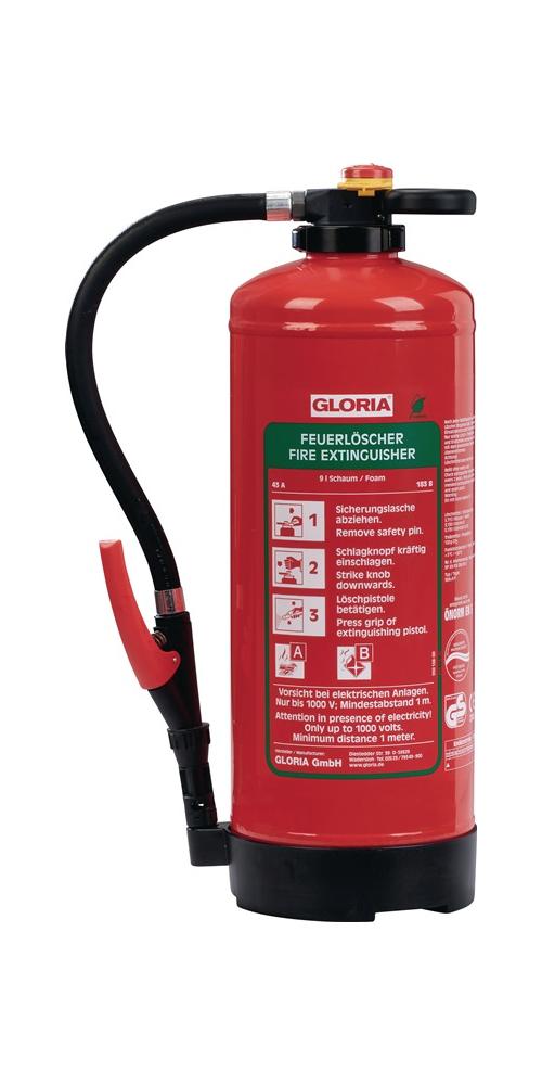 GLORIA Schaumfeuerlöscher 9 l Aufladegerät Brandklasse A 43 A 183 B mit Wandhalter