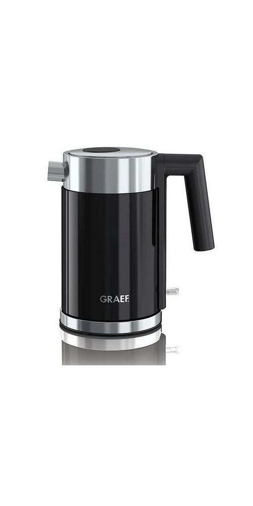 Die Leistung des Graef Wasserkochers WK402 in Schwarz ist mit 2000 Watt ausgezeichnet. Der aus Edelstahl bestehende Wasserkocher hat ein Fassungsvermögen von 1,0 l. Neben einem eingebauten Kalkfilter besitzt dieses Modell auch eine innen liegende Wasserstandsanzeige. Nachdem das Wasser eine Temperatur von 100 °C erreicht hat, schaltet sich das Gerät von selbst aus. Außerdem ist die Sicherheit auch durch einen Überhitzungsschutz gewährleistet. Das kabellose Gerät verfügt über einen 360°-Sockel.Trockengeh- und Überhitzungsschutz