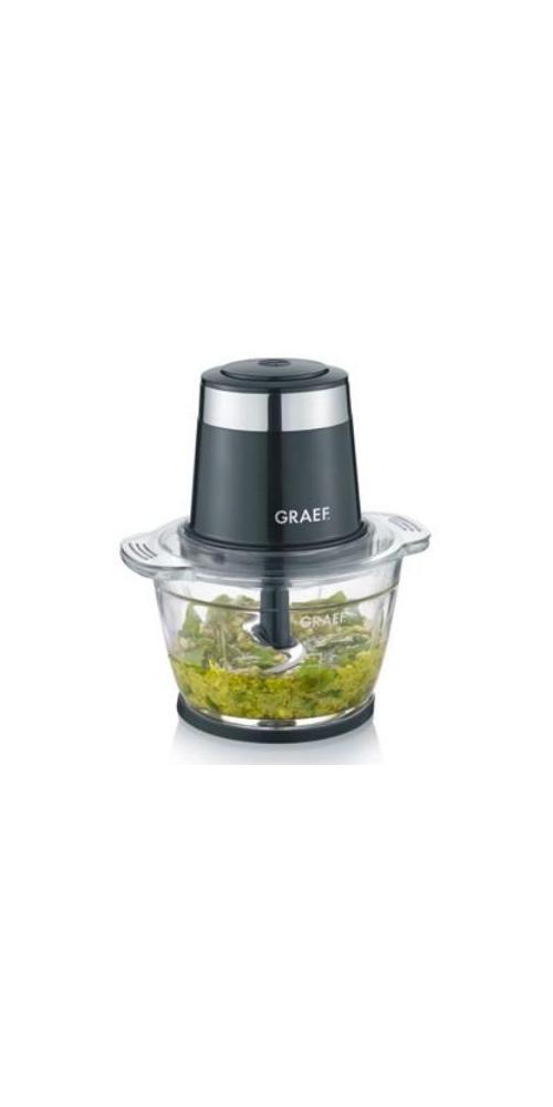 Der Zerkleinerer von Graef ist perfekt zum Schneiden und Mixen von Lebensmitteln. Insbesondere lässt sich dieser auch wunderbar für die Zubereitung von Babynahrung verwenden. Sein Edelstahlmesser ist vierflügelig. Der hochwertige und Spülmaschinen geeignete Zerkleinerungsbehälter aus Glas bietet 1 Liter Fassungsvermögen. Er arbeitet besonders schnell und effizient. Darf es eine wärmende Suppe sein, eine raffinierte Sauce, eine cremige Vinaigrette, ein leckeres Pesto oder ein herzhafter Brotaufstrich? In diesen und vielen weiteren Fällen ist der Zerkleinerer ein fleißiger Küchenassistent. Er kriegt alle Zutaten im Handumdrehen klein. Seien es Kräuter, Obst, Gemüse oder gar Nüsse. Dafür sorgen vor allem sein vierflügeliges Edelstahlmesser und sein starker 500-Watt-Motor. Die vier Edelstahlklingen des Geräts arbeiten effizienter und deutlich schneller als die zweiflügeligen Messer herkömmlicher Geräte und sorgen für eine homogene Konsistenz des Mixguts. Das kompakte Gerät lässt sich platzsparend aufbewahren und im Nu zusammenbauen. Denn wie bei Graef üblich, verbindet auch dieses Gerät Spitzentechnik mit durchdachtem Design. Farbe: schwarzSicherheitshinweise entnehmen Sie bitte der Bedienungsanleitung