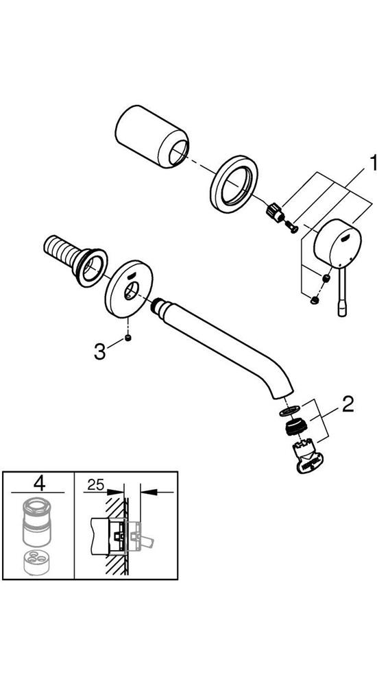 GROHE 2-Loch-Waschtischbatterie ESSENCE Ausladung 183 mm, Fertigmontageset für 3 chrom