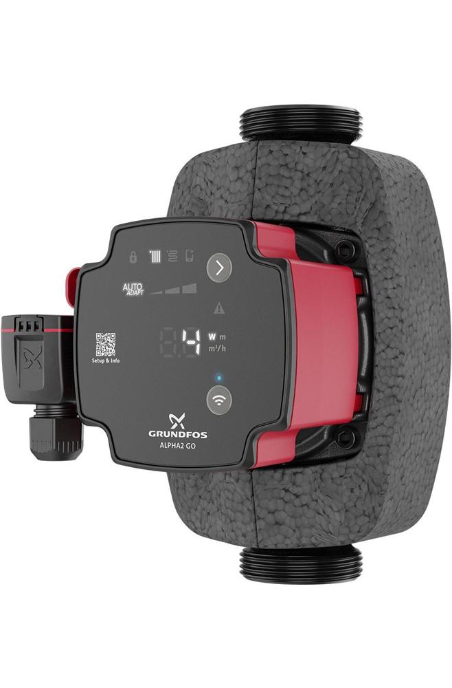 Die ALPHA2 GO ist eine hocheffiziente Umwälzpumpe mit einem elektronisch kommutierten Motor. Sie ist für die Umwälzung von Flüssigkeiten in Heizungs und Klimaanlagen ausgelegt. Die App Grundfos GO bietet zahlreiche digitale Funktionen · die die Inbetriebnahme sowohl bei Neu· als auch bei Ersatzinstallationen vereinfachen. Mit der App Grundfos GO können Sie beim Austausch integrierter wie externer Umwälzpumpen die beste Auswahl einfach überprüfen zudem lassen sich die exakten Pumpenkennlinien einfach übernehmen. Die ALPHA2 GO verfügt über intelligente Regelungsarten: Konstantdruck · Proportionaldruck · konstanter Volumenstrom und konstante Kennlinie. Jede Regelungsart hat einstellbare Sollwerte. Die Einstellung AUTOADAPT · die für Konstant· und Proportionaldruck verfügbar ist · macht eine manuelle Auswahl des Pumpensollwerts überflüssig. Der PWM-Eingang ermöglicht eine präzise externe Steuerung der Drehzahl · wodurch sich die Gesamtanlage noch besser optimieren lässt. Durch den Installationssteckverbinder wird die Installation ohne zusätzliches Werkzeug deutlich vereinfacht. Eine automatische Selbstentlüftung und ein Trockenlaufschutz sorgen für einen leisen und zuverlässigen Pumpenbetrieb. Das Produkt zeichnet sich durch einen robusten Startmodus aus · der das Risiko von Blockierungen durch Verunreinigungen · Magnetit oder Kalkablagerungen vermeidet. Im ungewollten Fall einer Blockierung der Pumpe versucht der Motor kontinuierlich · mit dem höchstmöglichen Drehmoment zu starten · sodass ein Anlauf auch unter schwierigen Bedingungen gewährleistet wird. Die Keramikwelle und die Keramiklager unterliegen lediglich minimalem Verschleiß. Dies erhöht die Lebensdauer und verringert die Wahrscheinlichkeit von Geräuschen · wie sie bei Verschleiß aufgrund des erhöhten Lagerspiels auftreten können. Wenn die Lufterkennungs· und Entlüftungsfunktion der Anlage Luft in dieser erkennt · beginnt die Umwälzpumpe zu pulsieren · um auf diese Weise die Luft effektiver zum nächstgelegenen Entlüftungsventil zu drücken. Die App Grundfos GO bietet außerdem die komfortable Möglichkeit · die Anlage anhand von Ereignisprotokoll und Verlaufsdaten zu Förderstrom · Förderhöhe · geschätzter Medientemperatur und Einschaltdauer zu überprüfen.Weitere technische Eigenschaften: