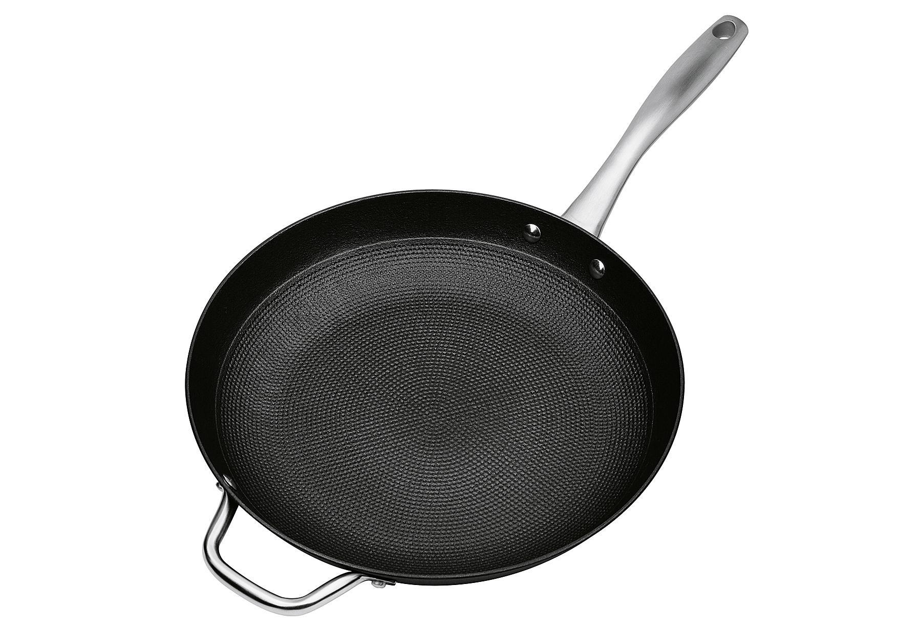 Die Bratpfannen sind besonders für die Profi- Küche geeignet - Ideal für Krossgebratenes. Innen ist eine neuartige PFAS-freie VITAFLON®QUARZIT Antihaft-Versiegelung mit hochwertigem, brillantem Finish. Es ist eine ausgezeichnete Antihaftwirkung, extrem hart und kratzfest. Der Boden ist eingearbeiteter Waben zur besseren Öl-, Fettverteilung mit einer optimierten, schnellen Hitzeverteilung. Die Edelstahlgriffe sind robust und hartgenietet. Diese Bratpfannen sind für alle Herdarten, auch Induktion geeignet. Backofengeeignet bis 240°C. Material: Gusseisen / Glas. Maße: Ø 20 cm, H 4 cm.Lieferumfang: