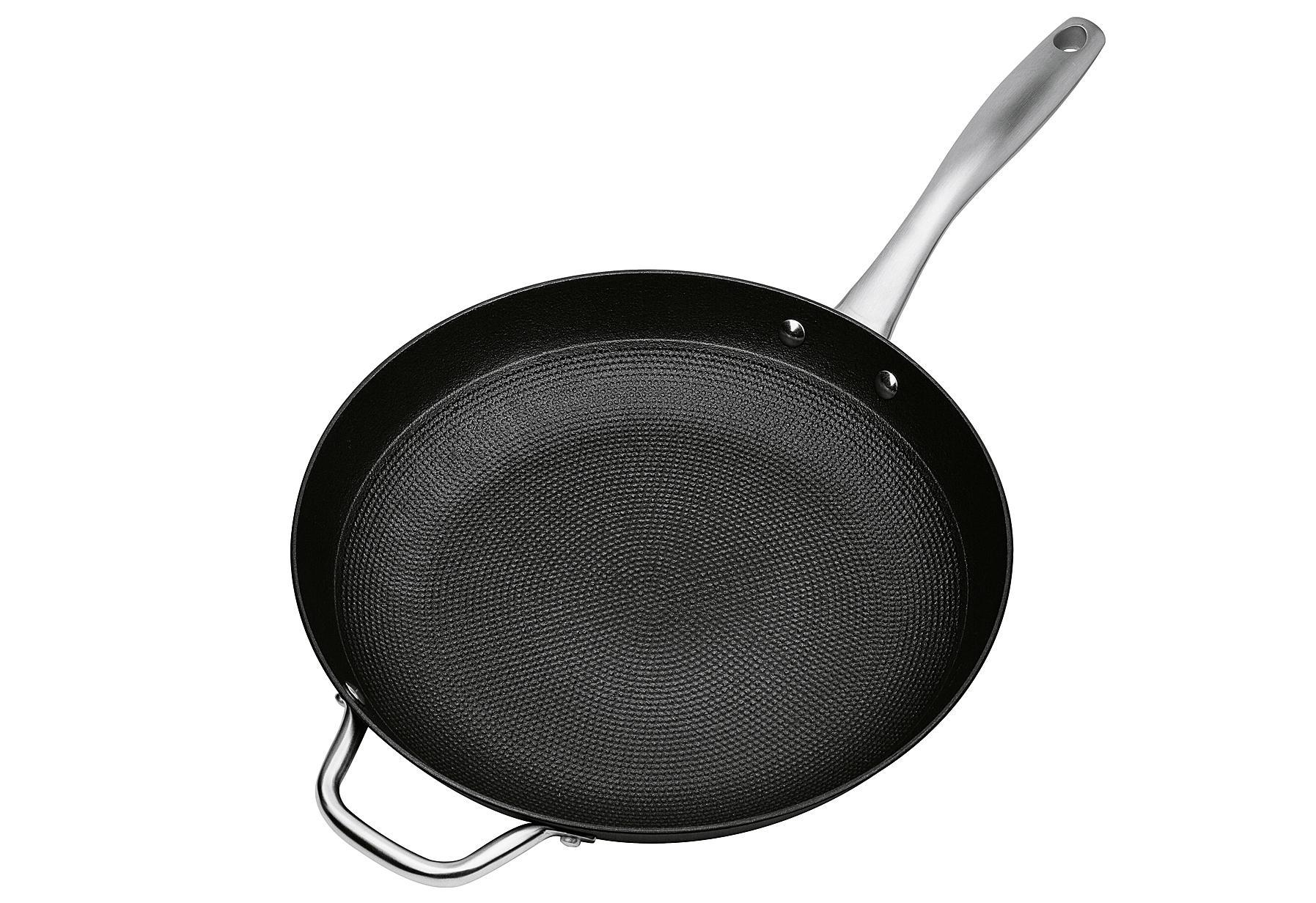 Die Bratpfannen sind besonders für die Profi- Küche geeignet - Ideal für Krossgebratenes. Innen ist eine neuartige PFAS-freie VITAFLON®QUARZIT Antihaft-Versiegelung mit hochwertigem, brillantem Finish. Es ist eine ausgezeichnete Antihaftwirkung, extrem hart und kratzfest. Der Boden ist eingearbeiteter Waben zur besseren Öl-, Fettverteilung mit einer optimierten, schnellen Hitzeverteilung. Die Edelstahlgriffe sind robust und hartgenietet. Diese Bratpfannen sind für alle Herdarten, auch Induktion geeignet. Backofengeeignet bis 240°C. Material: Gusseisen / Glas. Maße: Ø 28 cm, H 5,3 cm.Lieferumfang: