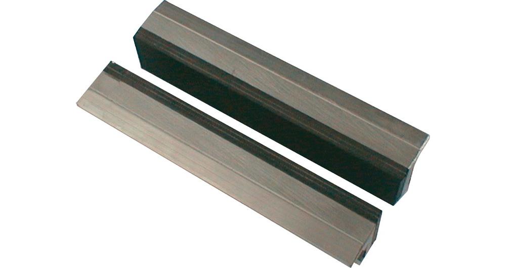 mit Gummibelag · mit Magnethalterung · kräftiges Alu-Profil mit Gummibelag zum Spannen von dünnwandigen Rohren, Fassondrehteilen, Holz- und Kunstoffteilen · eingearbeitete Magnetstreifen halten die Backen auf dem Schraubstock · die Legierung liegt in der Härte zwischen Kupfer und BleiVE = 1 Paar