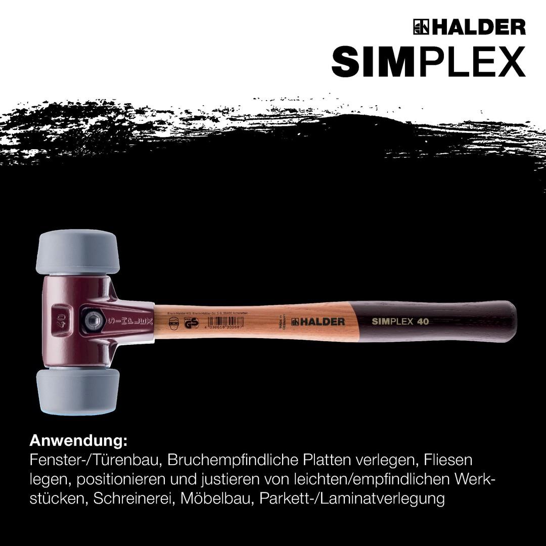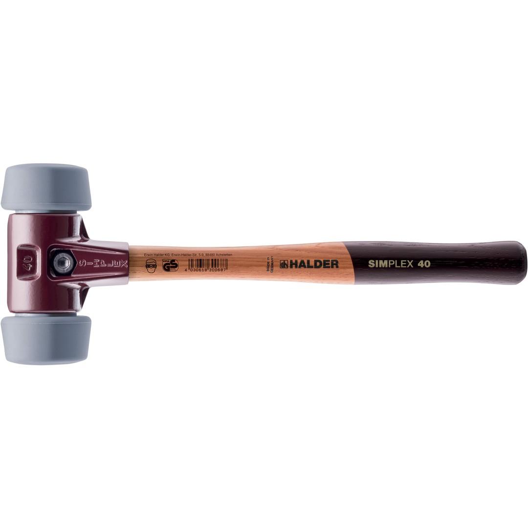HALDER SIMPLEX-Schonhammer, 50:40, TPE-mid; mit Tempergussgehäuse und hochwertigem Holzstiel | D=50 mm | 3003.051
