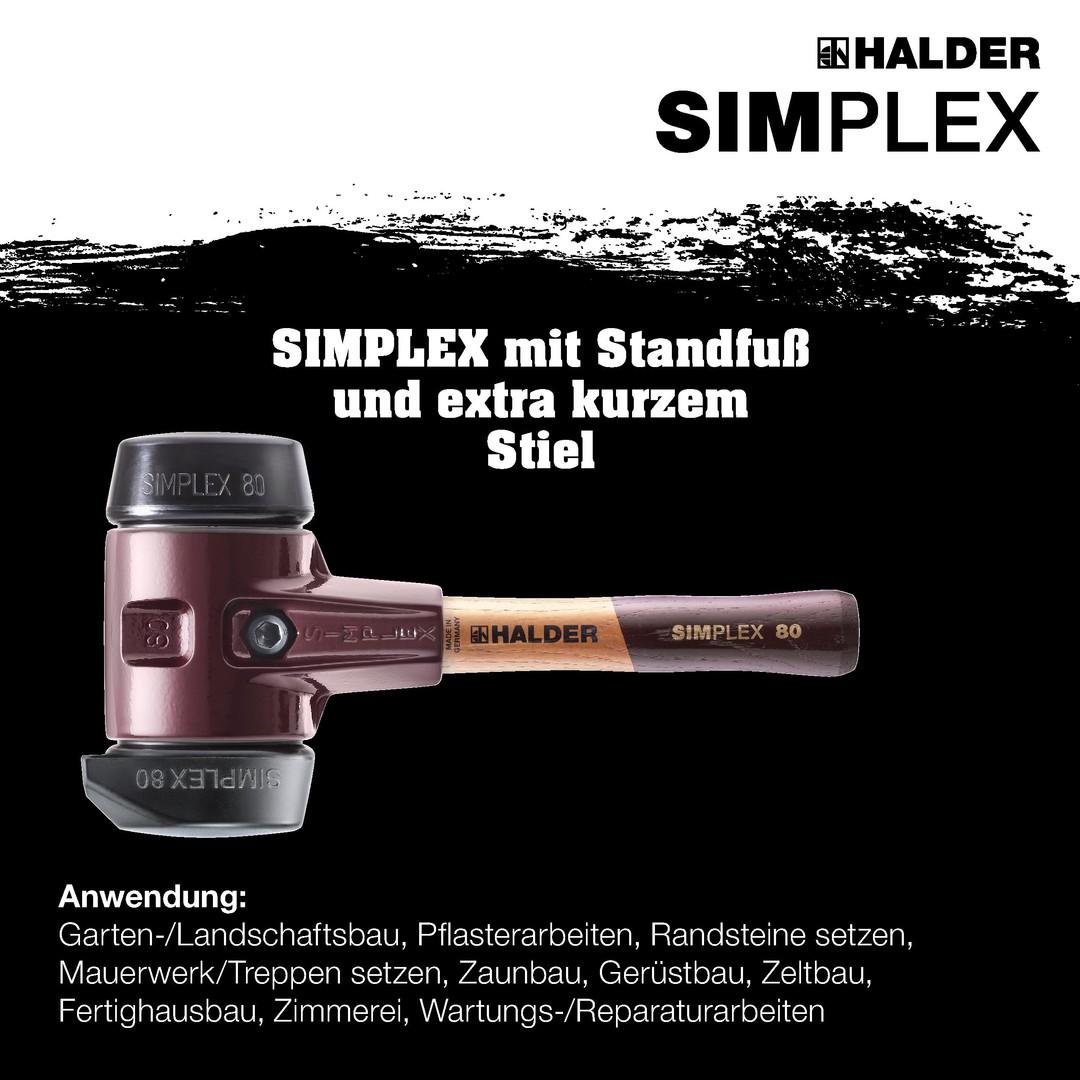 HALDER SIMPLEX-Schonhammer, Gummikomposition, mit Standfuß; mit Tempergussgehäuse und hochwertigem extra kurzen Holzstiel | D=80 mm / Stielausführung=extra kurz | 3022.282