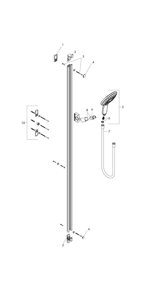 besteht aus: Handbrause · Brausestange · Brauseschlauch · Handbrausehalterung Brausekopfgröße: 150 mm Strahlart: RainAir · CaresseAir · Mix komfortable Strahlartenumstellung durch Select·Taste QuickClean: Kalkablagerungen lassen sich einfach mit dem Finger abrubbeln Neigungswinkel um 90Grad verstellbar · Handbrausehalterung schwenkt nach links und rechts sowie oben und unten maximale Durchflussmenge bei 3 bar: 16,4 l/min Mindestfließdruck: 1 bar Wandstützen aus Kunststoff Oberfläche Brausestange: chrom Profil Brausestange: eckig Brausestangenbreite: 23 mm Bohrabstand: 915 mm brauseseitiger Drehwirbel gegen lästiges Verdrehen des Brauseschlauches
