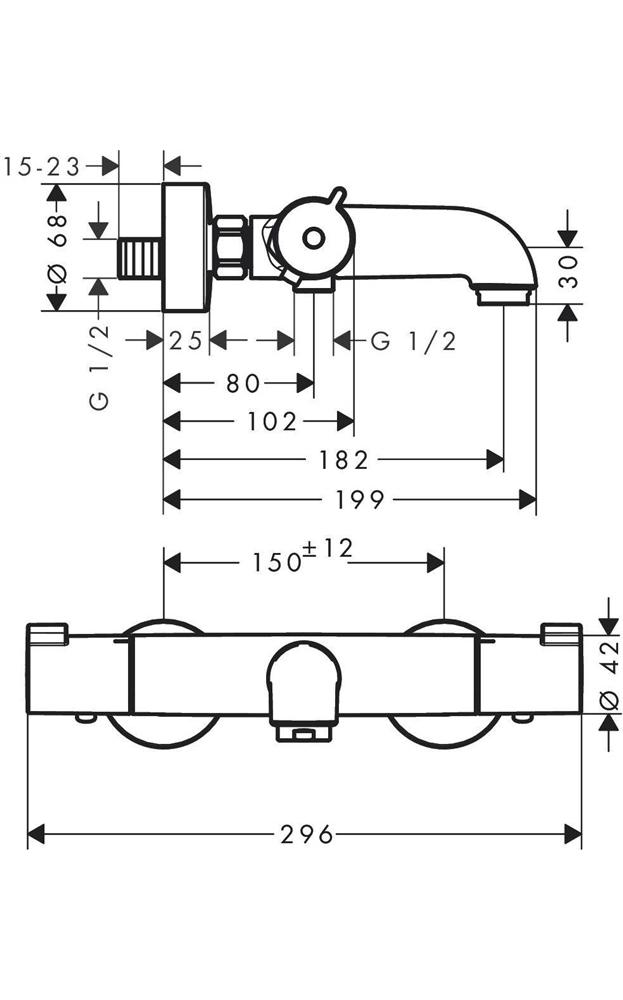 Ausladung 182 mm 2 Verbraucher Thermostatkartusche · Ab·/ Umstellventil Strahlart Wanneneinlauf: Normalstrahl maximale Durchflussmenge bei 3 bar: 20 l/min Durchfluss für Wanneneinlauf bei 3 bar: 20 l/min Durchfluss für Handbrause bei 3 bar: 16 l/min min. Betriebsdruck: 1 bar max. Betriebsdruck: 10 bar Sicherheitssperre bei 40 GradC Temperaturbegrenzung einstellbar mit isolierter Wasserführung Rückflussverhinderer mit automatischer Rückstellung mit Schalldämpfer Material Griffe: Metall Anschlussgröße: DN15 Anschlussart: G 1/2 Stichmaß: 150 Plusminus 12 mm Schmutzfangsieb integriert Geräuschgruppe: II Durchflussklasse: C · A