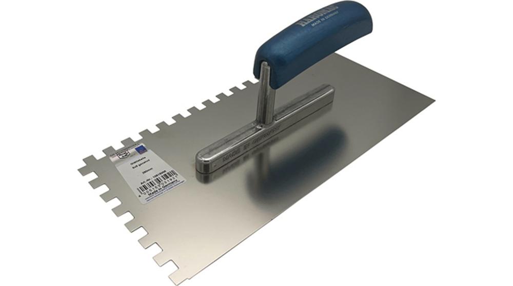 HAROMAC Glättekelle Länge 280 mm Breite 130 mm Buchenholzgriff Zahnung 10x10 mm rostfreier Edelstahl