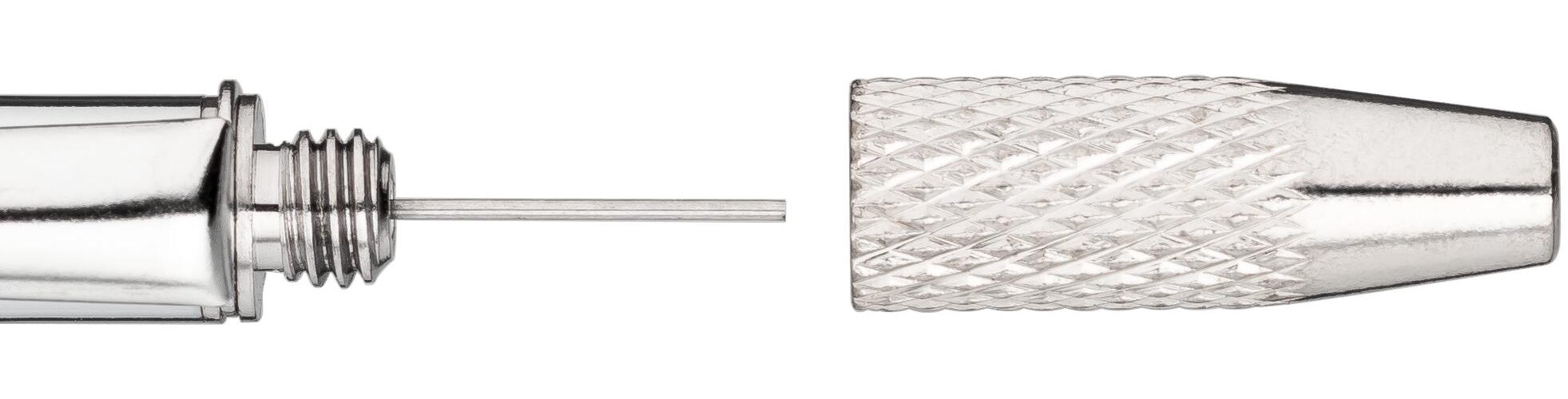 - Einstellnadel (⌀ 0,7 mm) und Schutzkappe