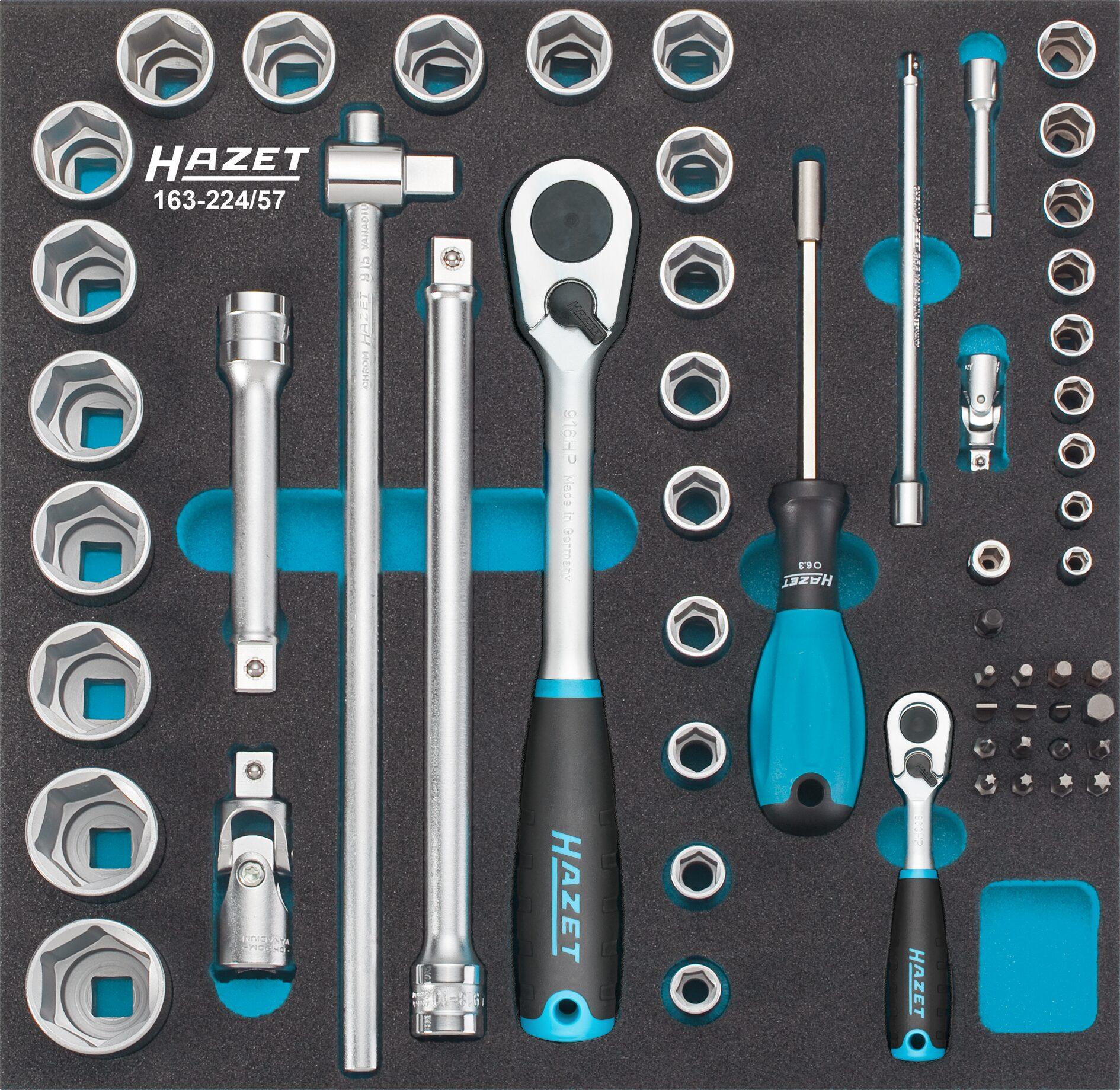 HAZET Steckschlüssel- / Schraubendreher Satz 163-224/57 ∙ 1/2 Zoll (12,5 mm) Vierkant hohl, 1/4 Zoll (6,3 mm) Vierkant hohl, 1/4 Zoll (6,3 mm) Sechskant massiv