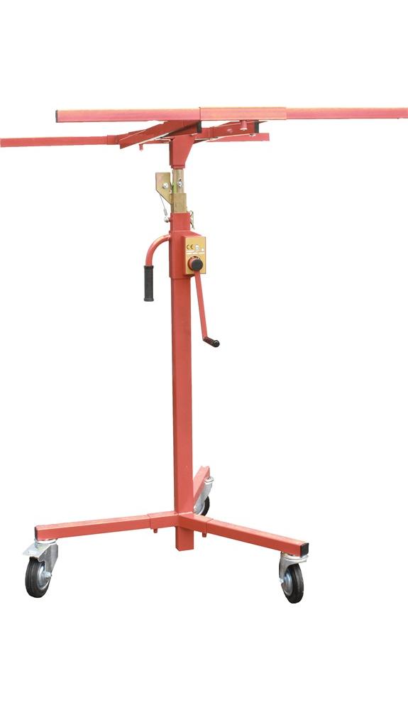 unmontiert · rot · pulverbeschichtet · max. Traglast 50 kg · mit Handwinde CE-geprüft · Räder feststellbar · Hubhöhe einstellbar von 1510 - 3420 mm (entspricht ca. 3,8 m² Gipskartonplatte (12,5 mm))Weitere technische Eigenschaften: