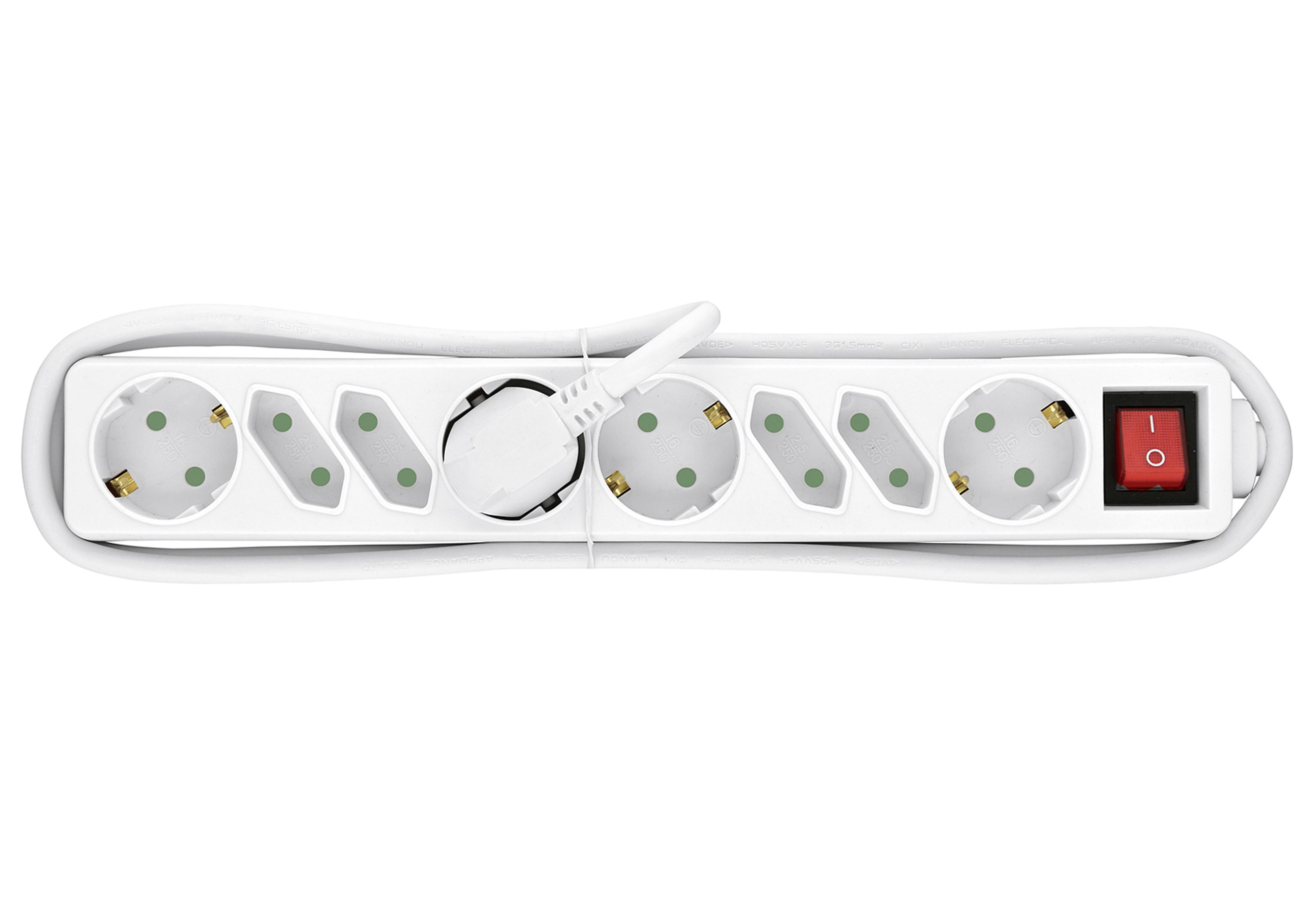 mit mit erhöhtem Berührungsschutz, 4 x Schuko, 16 A, 4 x Euro, 2,5 A, Anschlußkabel 3 x 1,5mm², ca. 1,4m, Betriebsspannung: 250V/16A/50Hz, Belastbarkeit: max 3500W, nur für InnenräumeAttribute