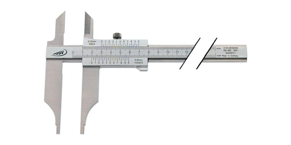 HELIOS PREISSER Werkstattmessschieber DIN 862 300 mm mit Messerspitzen parallaxfreie Ablesung Schnabellänge 90 mm